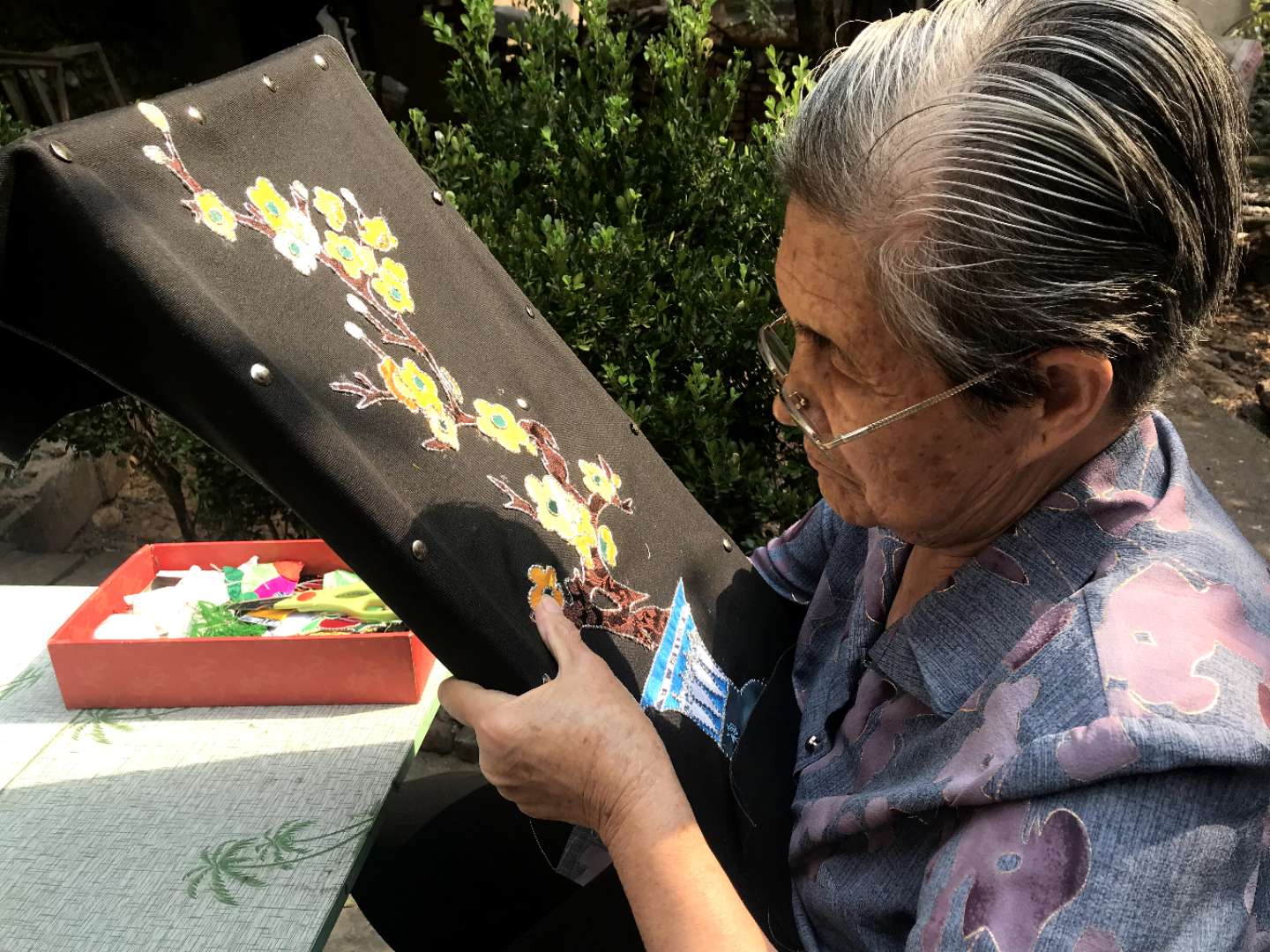 多年來,蔡月娥一直潛心研究布貼技藝,多次嘗試突破自我,在傳統(tǒng)布貼基礎(chǔ)上不斷創(chuàng)新,她整理總結(jié)刺繡紋樣進(jìn)行合理綴飾,形成了自己的技藝特點(diǎn)和獨(dú)特風(fēng)格。
