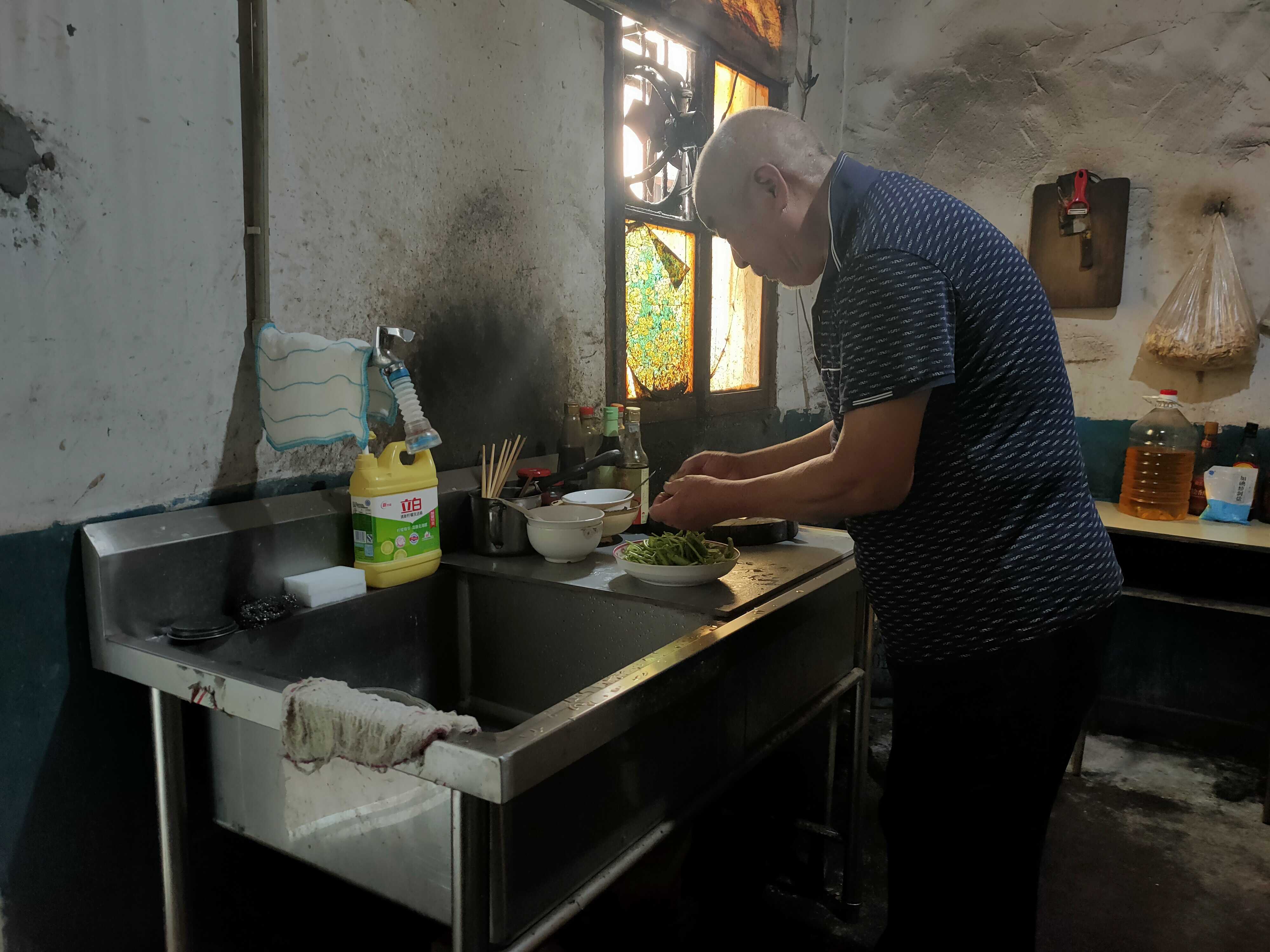 出院后,黃相英半身癱瘓,只有右側手腳能動。她喜歡吃稀飯、面條等好消化的食物,不會做飯的他便學著做飯,變著花樣給她做,以前不會做飯的他,現在動手做手搟面、包餃子都不在話下。她雖然右側手腳能動,但沒有力氣,吃飯時常撒一身。于是,每次吃飯,汪賢商就像喂小孩一樣喂飯。