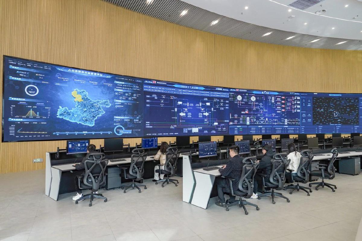 昨日,在大冶市氫能創新科技園智慧化信息中心,工作人員在智慧大屏上調度園區能源體系的運行。作為園區的“數字中樞”,這塊氫能管控大屏,能夠全面實時展示氫能“制、儲、加、用”全產業鏈運行數據。 記者 張成 攝