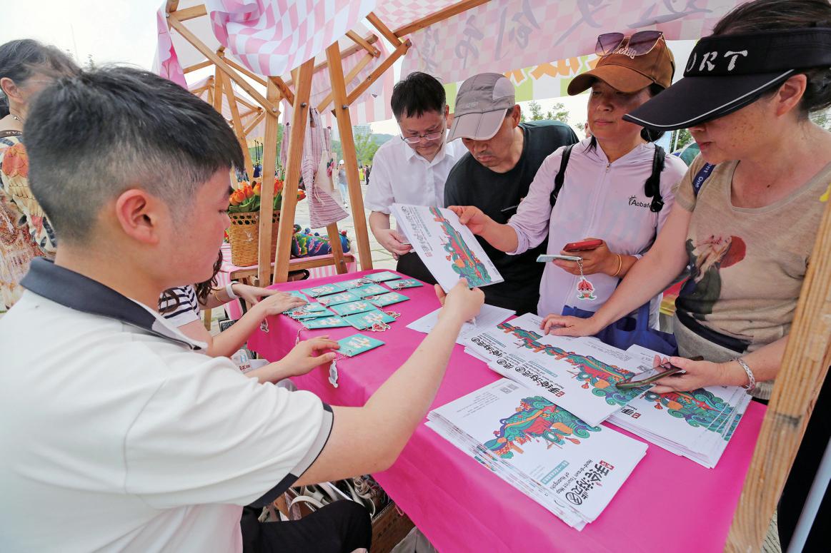 市民在領(lǐng)取《黃石手繪游覽圖》《黃石文旅寵客手冊(cè)》