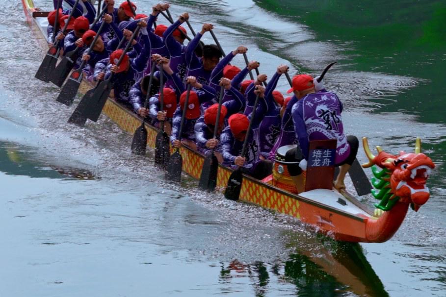 5月19日下午,陽新富河龍港段浪濤翻涌,龍港鎮大橋鋪村52名龍舟隊員分乘兩條龍舟展開集訓。隊伍中,8名本村大學生與父輩們并肩劃槳,全力備戰即將到來的湖北省龍舟公開賽陽新站公開組和地方組賽事。(通訊員 石教星 鄭俊峰 攝)