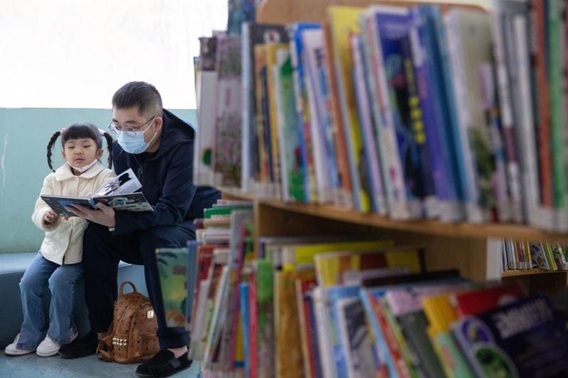 父女共讀 張濤 攝