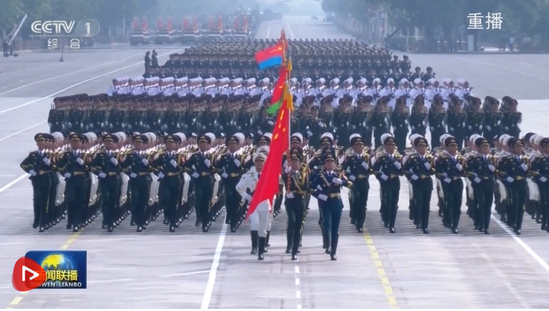 雄壯的軍樂聲中,習近平乘車沿著寬闊的長安街,依次檢閱13個徒步方隊、1個戰旗方隊、22個裝備方隊。受閱部隊軍容嚴整、意氣風發,鐵甲戰車整齊列陣、威風凜凜。這是人民軍隊奮進建軍百年的嶄新亮相,這是中華民族捍衛世界和平的堅定宣示。