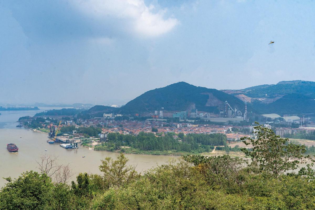 登山遠眺,長江煙波浩渺,航道船舶來往不斷。滾滾江水對面,田家鎮清晰可見。