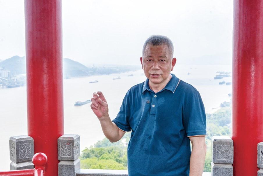 登半壁山遠眺,長江煙波浩渺,航道船舶來往不斷