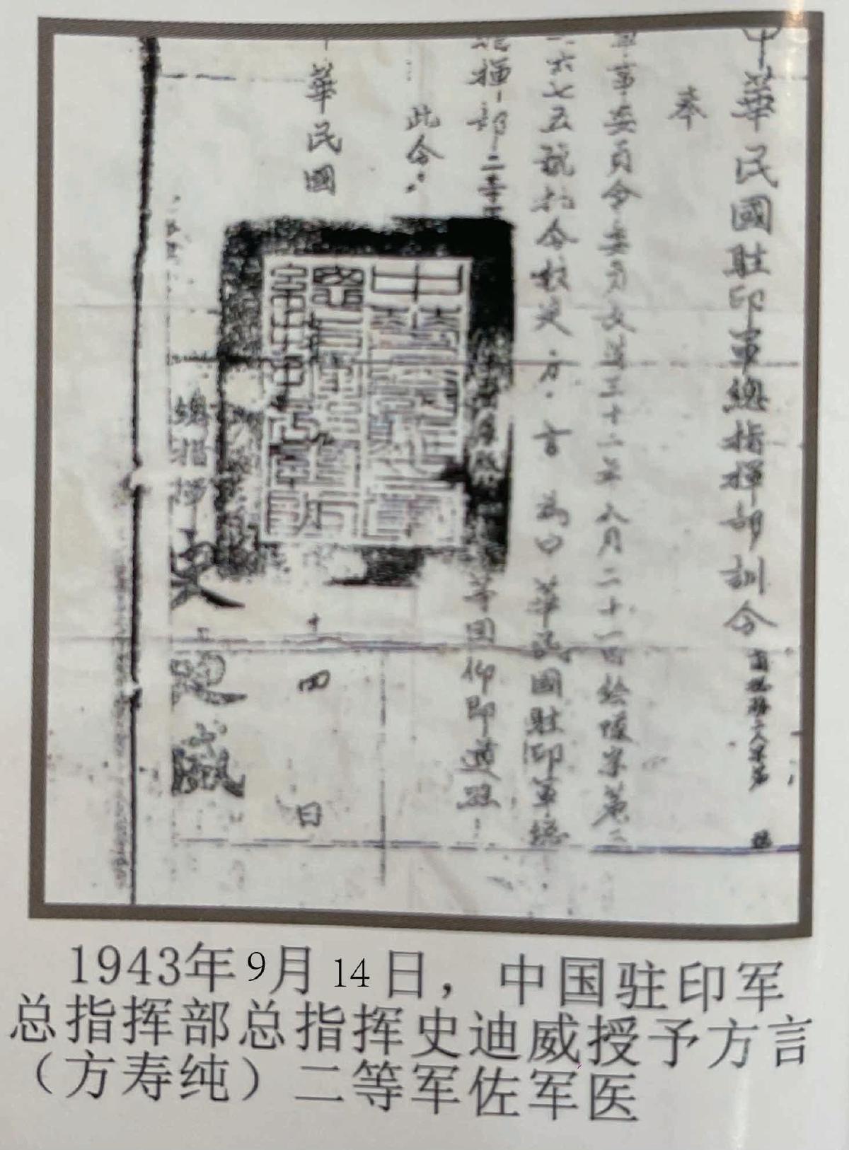 間諜案告破,數名間諜被處決。方壽純的敏銳與忠誠,為她贏得了一項殊榮:1943年9月14日,史迪威將軍親自為她授予“二等軍佐軍醫”軍銜(相當于中尉)。方壽純生前一直珍藏著這份《駐印軍總指揮部訓令》,視其為一生的榮耀。