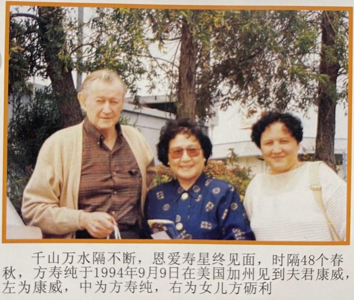 1994年9月,在女兒的陪伴下,方壽純前往加州見康威——這是兩人闊別48年后的第一次見面,也是最后一次。當被問及相見情景,方壽純平靜地說:“沒說什么,不知從何說起。”兩人共進晚餐,默默相伴4小時。2年后,康威病逝。