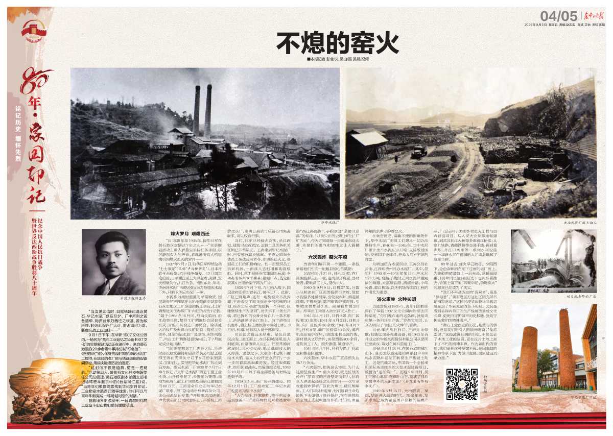 “六次轟炸,損失這么慘重,為什么還要堅持生產?窯火不熄,就是抗戰的槍聲!”羅荔寶的聲音堅定而有力,他向眾人講述起那段悲壯的歲月——270余枚重磅炸彈將廠區化為焦土,破瓦頹垣間,工人們卻沒有退縮,他們冒著生命危險拆下未爆彈片修補鍋爐,在布滿彈坑的空地上支起帳篷當作臨時車間,用最簡陋的條件守護著窯火。