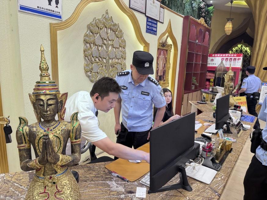 西塞山區(qū)分局民警在轄區(qū)重點場所開展清查