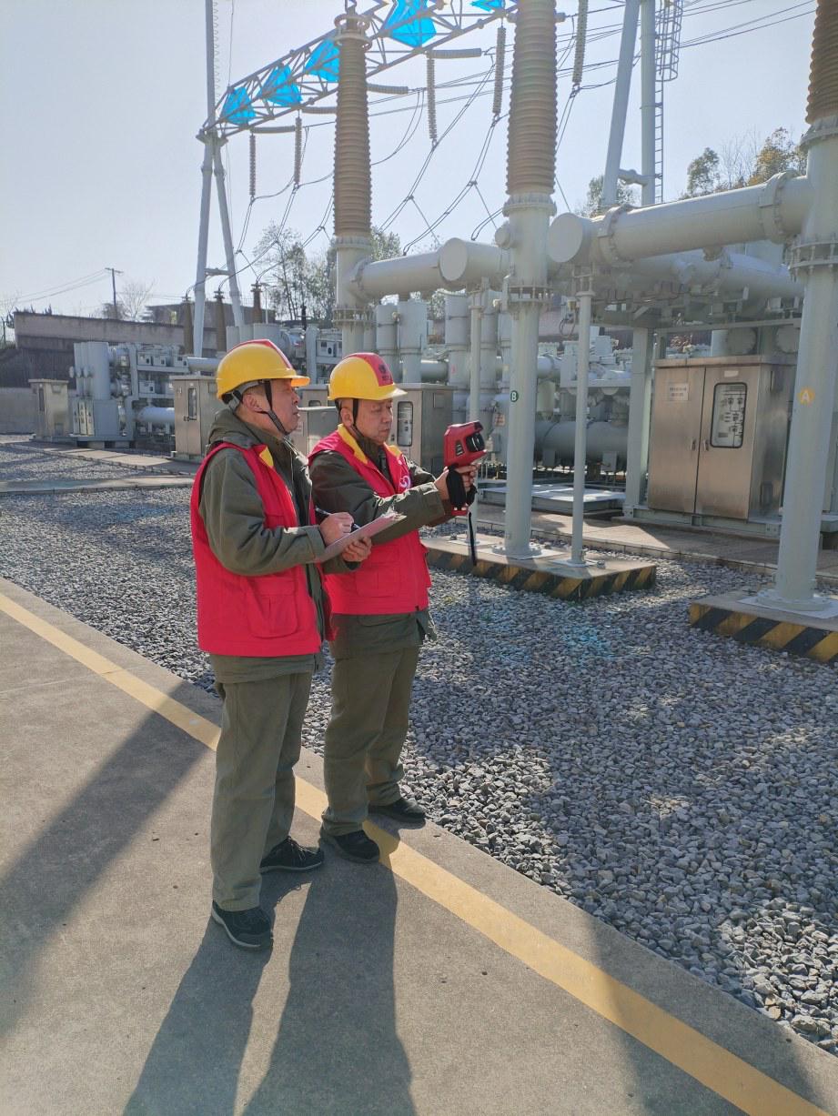 同一時(shí)間,220千伏青港湖變電站內(nèi)也是一片忙碌景象。運(yùn)維人員分工明確,緊張而有序地進(jìn)行著特巡工作。他們穿梭于各個(gè)設(shè)備之間,用專業(yè)的工具對(duì)設(shè)備進(jìn)行檢測(cè)。有的使用紅外測(cè)溫儀對(duì)設(shè)備的關(guān)鍵部位進(jìn)行溫度測(cè)量,有的在10千伏配電室內(nèi)進(jìn)行開關(guān)柜帶電檢測(cè),有的則在記錄設(shè)備的運(yùn)行數(shù)據(jù)。