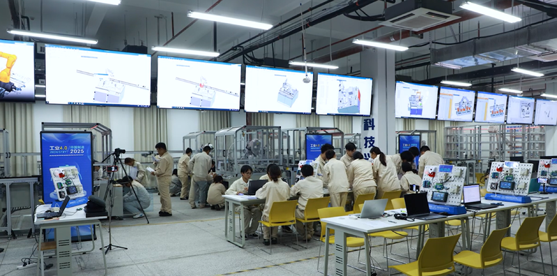 如何解決傳統教學中存在的“重理論輕實踐、重知識輕素養”的痛點問題,楊瀟黎介紹,在學校的支持下,教師團隊成員與企業工程師,共同打造了“大師工作坊+技能工作坊”的雙坊教學陣地,并布設了虛擬產線、模擬產線、真實產線“三產線”教學環境。“虛擬產線能夠讓學生在數字空間中完成方案設計和仿真驗證,模擬產線為學生提供低成本試錯的實操平臺,而真實產線則直接對接企業生產場景,從而實現教學過程與生產流程的無縫對接。”楊瀟黎說。